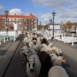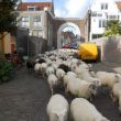 schaapskudde over de weg